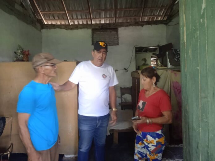 Noel Chinea Pérez, vicegobernador de Villa Clara encabezó el equipo de trabajo que este lunes recorrió el poblado de Sitiecito, en Sagua la Grande, con el objetivo de evaluar los daños ocurridos tras las fuertes precipitaciones del sábado.