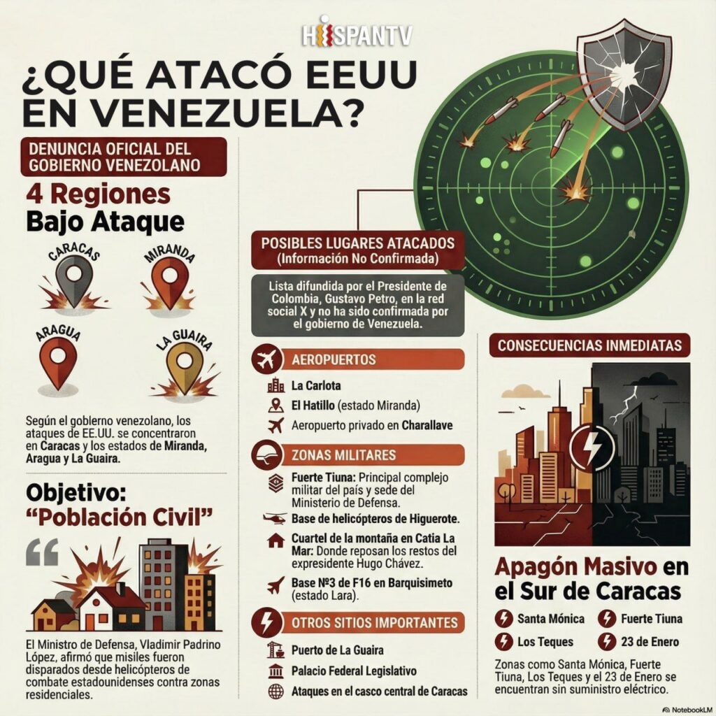 Desde la base militar La Carlota, en el Estado Miranda, uno de los objetivos del ataque perpetrado por EE.UU. en horas de la madrugada de este sábado, se reportan daños considerables en la zona, dónde, según la información, hasta el momento fuentes autorizadas confirman los impactos de al menos tres misiles en los alrededores.
