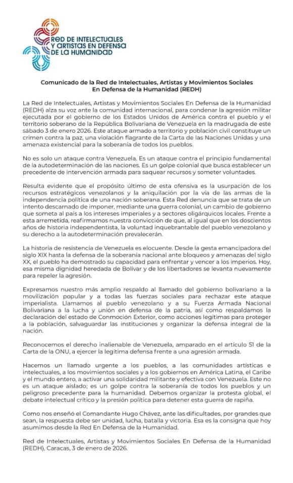 No seremos testigos pasivos del viejo guión imperial escrito con sangre en nuestro continente. No normalizaremos la barbarie contra el hermano pueblo de Venezuela.