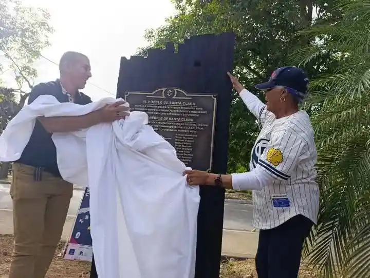 Dicha tarja se encuentra en el Parque del Burro Perico, donde antaño se encontraba el estadio Boulanger Park, casa de los míticos Leopardos santaclareños.