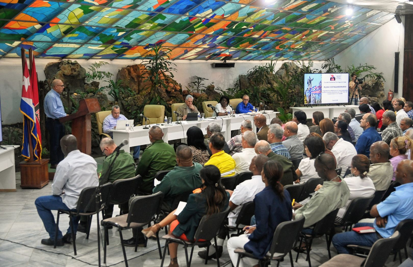 Miguel Díaz-Canel Bermúdez, Primer Secretario del Comité Central del Partido Comunista de Cuba y Presidente de la República, encabezó el Pleno Extraordinario del Comité Provincial del Partido en Santiago de Cuba, donde enfatizó que la verdadera unidad se construye con «el debate, la crítica responsable» y no sobre el silencio.