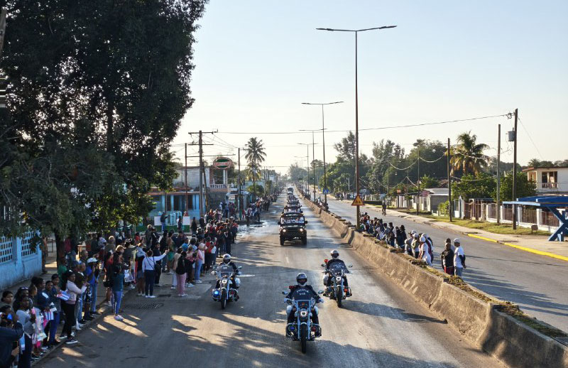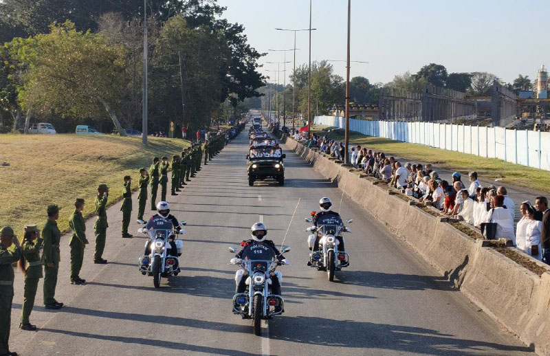Camina el cortejo por la ancha avenida de Rancho Boyeros y la gente está desde la madrugada a la espera del momento.