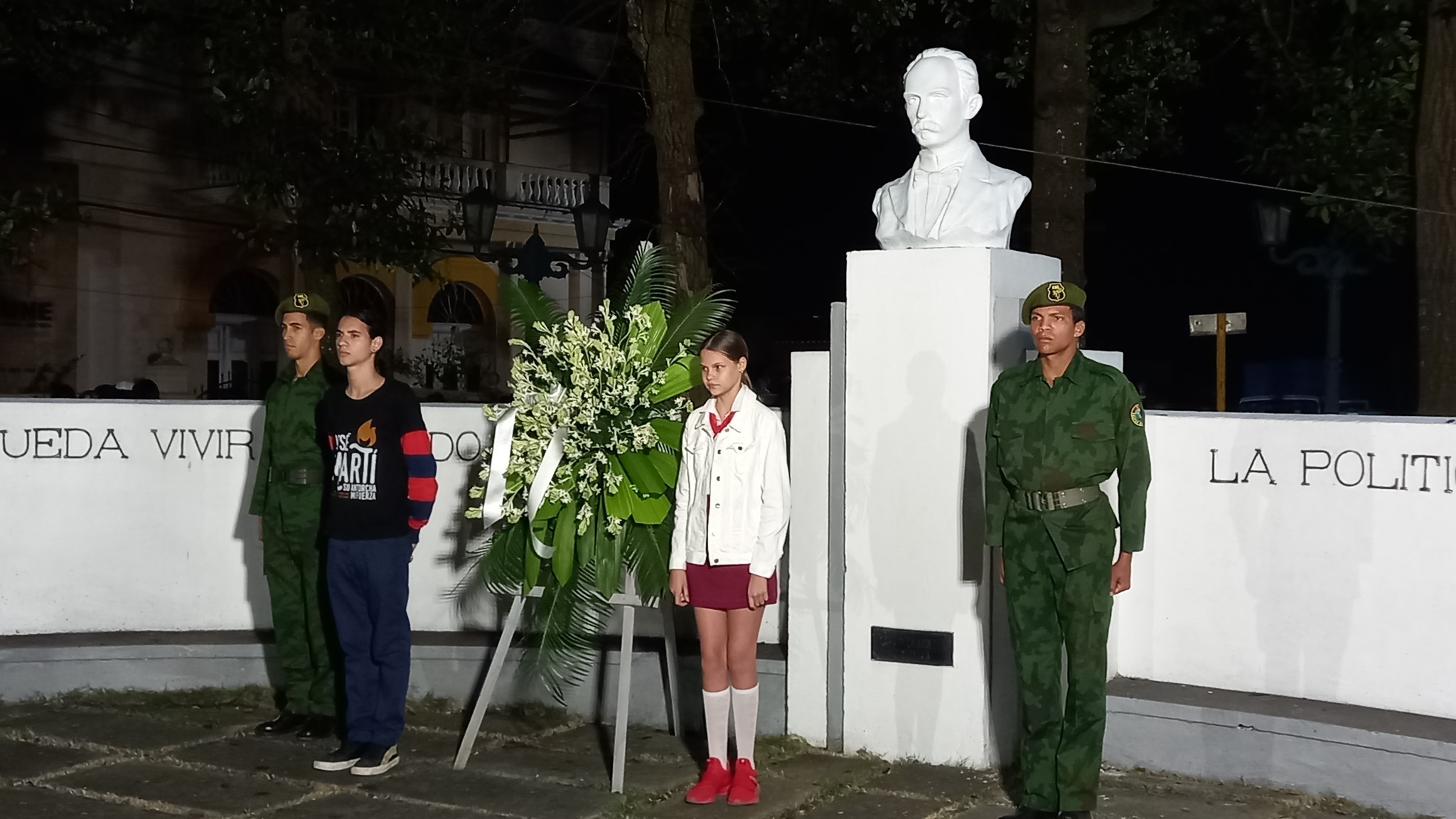 Luego se colocó una ofrenda floral ante el busto de bronce del Apóstol, situado frente a la terminal de trenes; más adelante, en las intersecciones de las calles Luis Estévez y Martí, se volvió a rendir tributo a Fidel, justo en la casa del fallecido abogado Benito Besada, su amigo y compañero de estudios, lugar donde además durmió el líder histórico de la Revolución cubana en la noche del 13 de diciembre de 1950, previa a su primera autodefensa en el Tribunal de Las Villas.