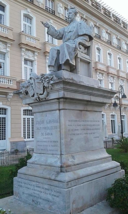 El monumento fue inaugurado el 2 de enero de 1911 en esa villa y en su pedestal se grabaron las siguientes palabras de Albarrán pronunciadas en 1890:Si los azares de la vida me han hecho adoptar por patria a la grande nación francesa, nunca olvido que soy cubano y siempre tenderán mis esfuerzos a hacerme digno de la tierra en que nací.