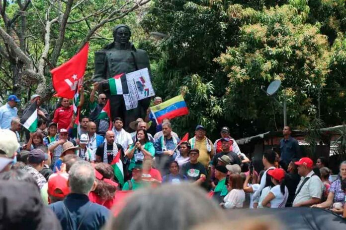 Bajo el llamado “¡Marchamos por la vida, por la justicia y la soberanía! ¡Nuestra lucha es la misma! ¡Palestina Vencerá!”, autoridades, movimientos sociales y populares, jóvenes, el pueblo, caminaron desde el parque Generalísimo Francisco de Miranda, Área Metropolitana que Caracas, hasta la embajada palestina.