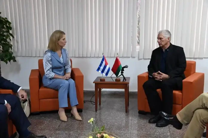 Su visita fortalece los vínculos interpartidistas entre los dos países, afirmó el Primer Secretario del Comité Central del Partido y Presidente de la República, Miguel Díaz-Canel Bermúdez, durante un encuentro con la Presidenta del Partido de Belarús Bélaya Rus, Olga Nikolaevna Chemodanova.