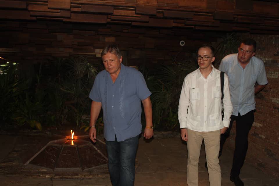 Con su mano derecha en el pecho, el embajador de la Federación de Rusia se presentó ante el nicho del Comandante Guevara en el Memorial que desde Santa Clara inmortaliza su legado, junto a la delegación que lo acompañó en su visita oficial durante dos días a Villa Clara, trajo flores blancas para el Guerrillero y príncipes negros a sus compañeros de lucha.
