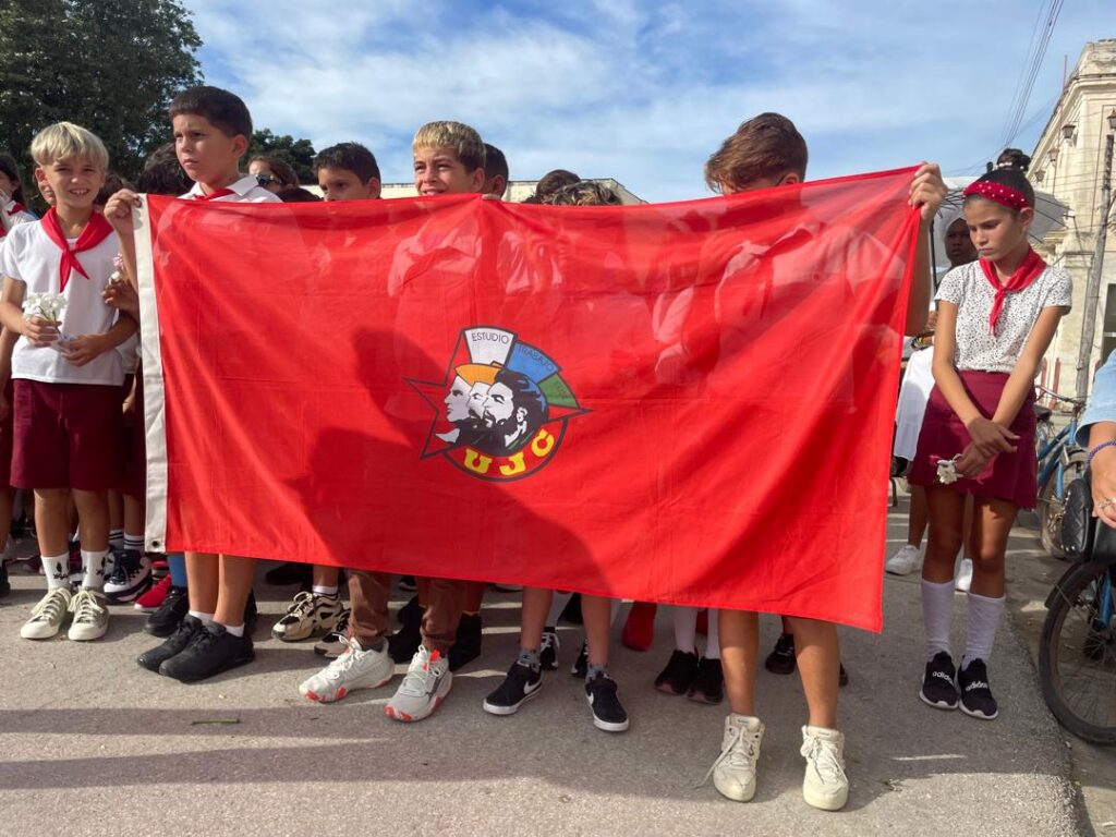 Autoridades políticas, gubernamentales y de masas, así como trabajadores, estudiantes, profesores y una representación de los hijos de la Villa del Undoso presenciaron la colocación de una ofrenda floral al pie de la tarja en ese mismo sitio donde habló el Héroe de Yaguajay, aquel 28 de junio de mil 959.