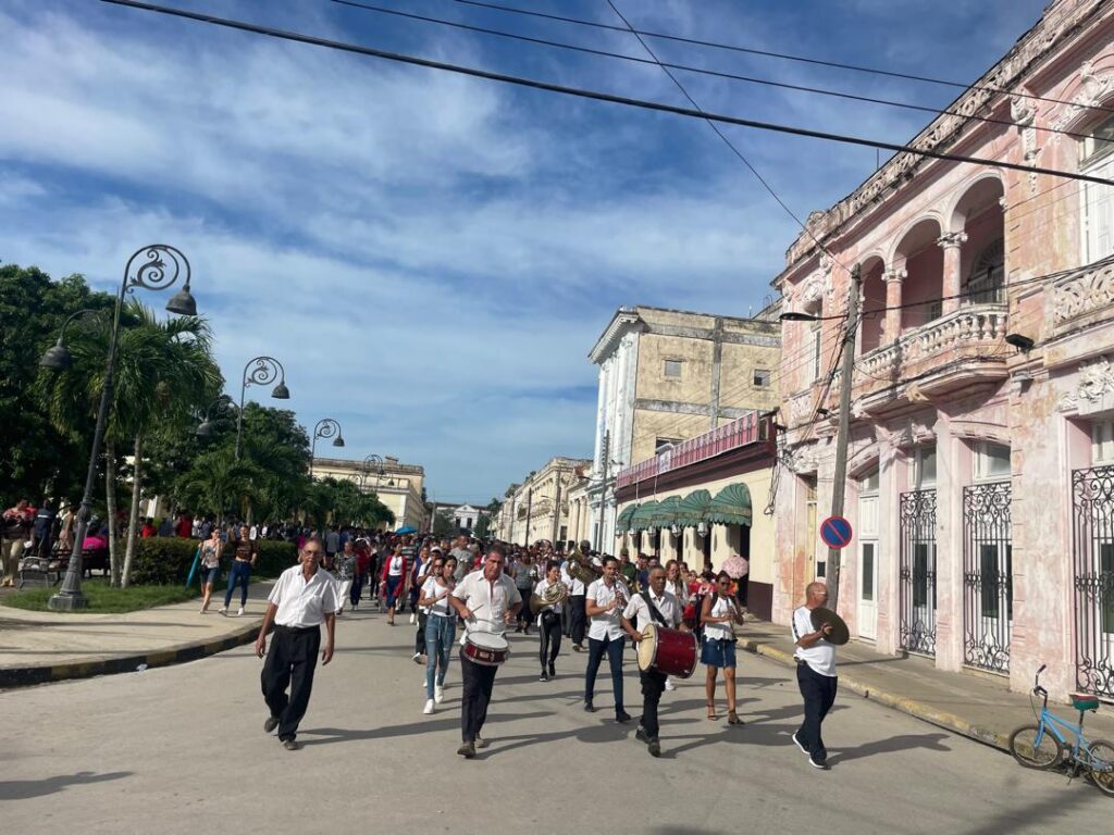 Desde el histórico sitio donde Camilo le hablara al pueblo sagüero partió el desfile popular, encabezado por la banda municipal de concierto.